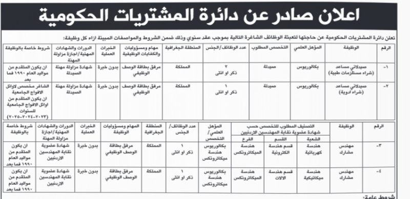 دوائر حكومية تعلن شواغر وأسماء موظفين فاقدي وظائفهم