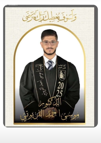 الدكتور موسى احمد القريوتي .. ألف مبروك التخرج بأمتياز وعقبال الاختصاص