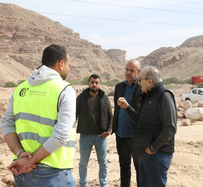تفقد وزير الأشغال العامة والإسكان، المهندس ماهر أبو السمن، اليوم، مشاريع معالجة أضرار السيول وحماية المنشآت المائية، على طريق البحر الميت، الأغوار الجنوبية.
