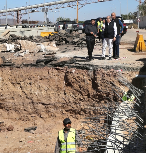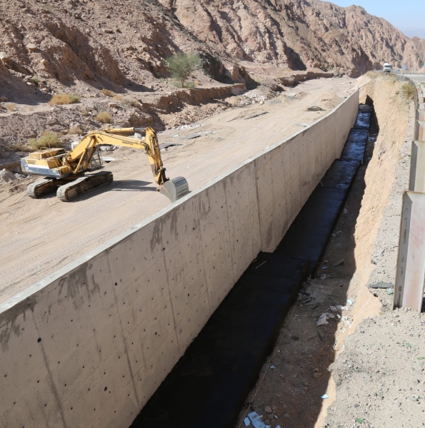 وفي منطقة النفق، تابع الوزير أعمال تصريف المياه وإزالة الأتربة التي تسببت سابقاً بإعاقة حركة الشاحنات بعد أن وصل ارتفاع الطمي في بعض المواقع إلى أربعة أمتار، حيث يجري العمل حالياً على إنشاء عبارات لتصريف مياه الأمطار وتنفيذ أعمال حمايات وجدران "جابيون" لضمان عدم تكرار تجمع المياه داخل النفق، وذلك ضمن خطة المعالجة التي تقدر تكلفتها بنحو 1.3 مليون دينار.