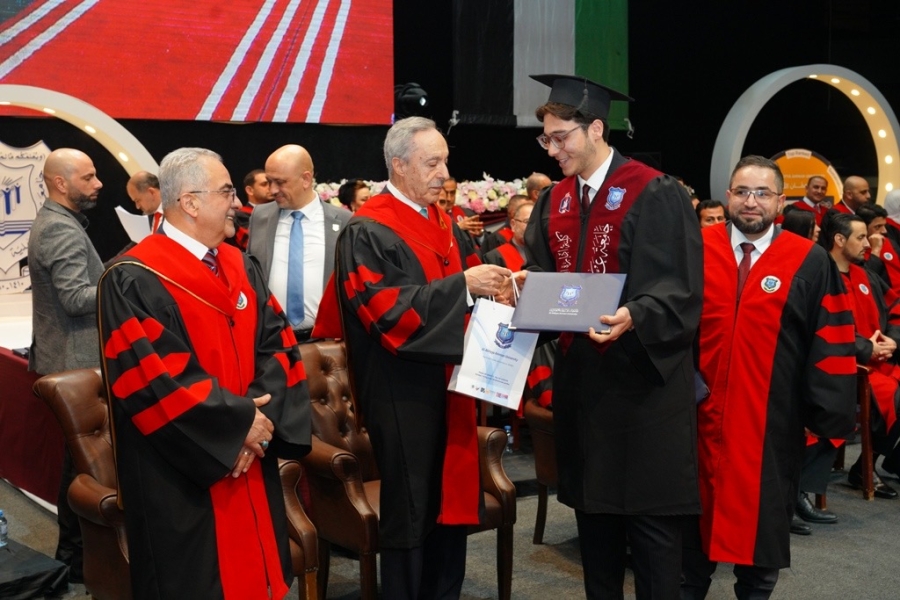 رعى دولة الاستاذ عبدالكريم الكباريتي رئيس مجلس أمناء جامعة عمان الاهلية مساء أمس 15-2-2026على مسرح الأرينا احتفال اليوم الاول لجامعة عمان الاهلية بتخريج طلبتها للفصل الاول 2025- 2026 من الفوج (33) لكليات : " الدراسات العليا ، الآداب والعلوم ، العلوم التربوية ، إدارة الضيافة والسياحة ، الحقوق ، الأعمال " ، بحضور الاستاذ الدكتور ساري حمدان رئيس الجامعة ، والاستاذ عمر الحوراني نائب رئيس هيئة المديرين ، وعدد من أعضاء مجلس الأمناء ،ونائب رئيس الجامعة الاستاذ الدكتور احمد حمدان " عميد كلية طب الاسنان " ، ومساعد الرئيس لشؤون الاعتماد والجودة والتخطيط الدكتور إياد شعبان،والسادة العمداء ، وأعضاء الهيئة التدريسية ، وعدد من أعضاء الهيئة الإدارية ، وحشد كبير من ذوي الطلبة الخريجين والمدعوين .