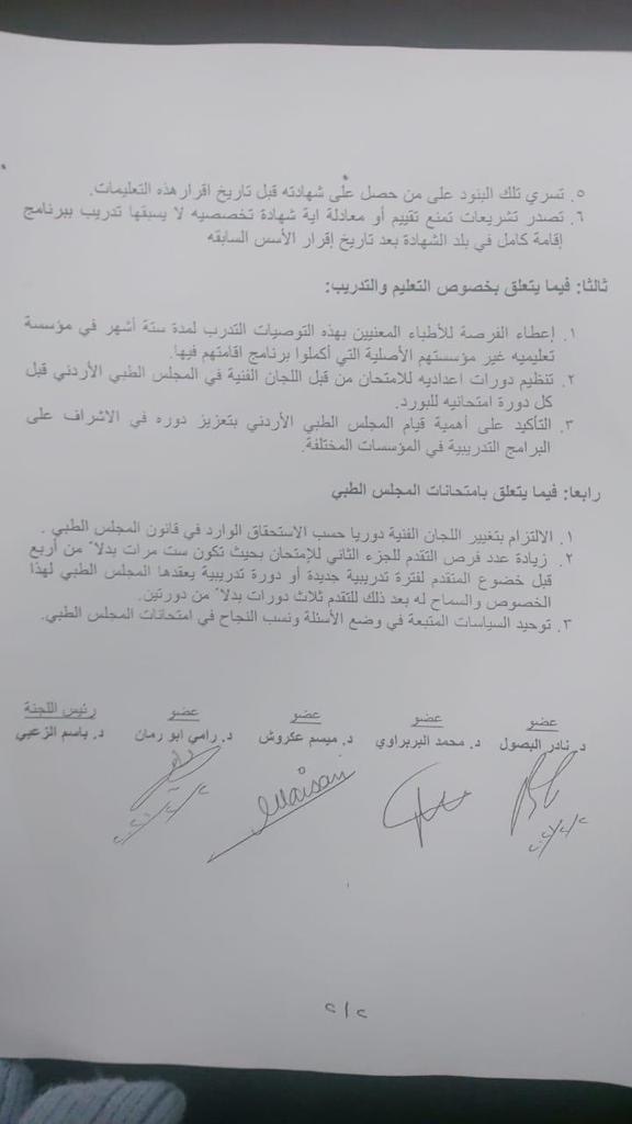 غير أن المفارقة — بحسب ما يطرحه عدد من الأطباء المعنيين — أن المرحلة اللاحقة، في عهد الوزير الذي خلف د. عبيدات، شهدت ما يصفونه بعرقلة تنفيذ التوصيات، وفرض شروط جديدة اعتُبرت مجحفة وغير منسجمة مع روح الرؤية الأصلية.