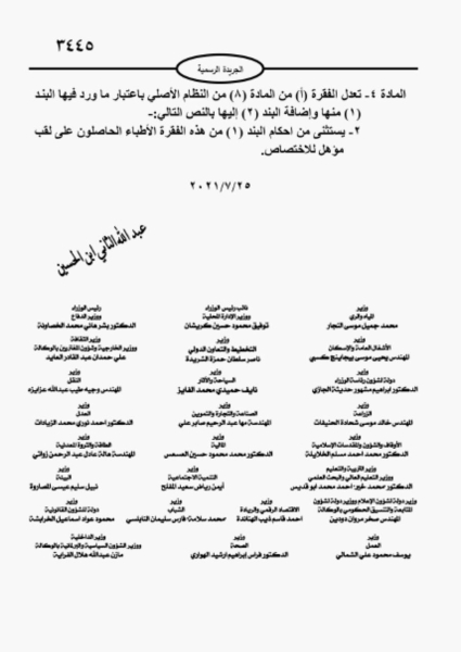 • تعطيل إدراج لقب «مؤهل اختصاص» فعلياً.