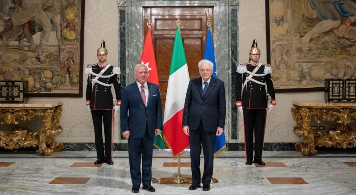 عقد جلالة الملك عبدالله الثاني لقاء مع الرئيس الإيطالي سيرجيو ماتاريلا بالقصر الرئاسي في روما، تناول علاقات الصداقة التاريخية بين البلدين، والمستجدات الإقليمية