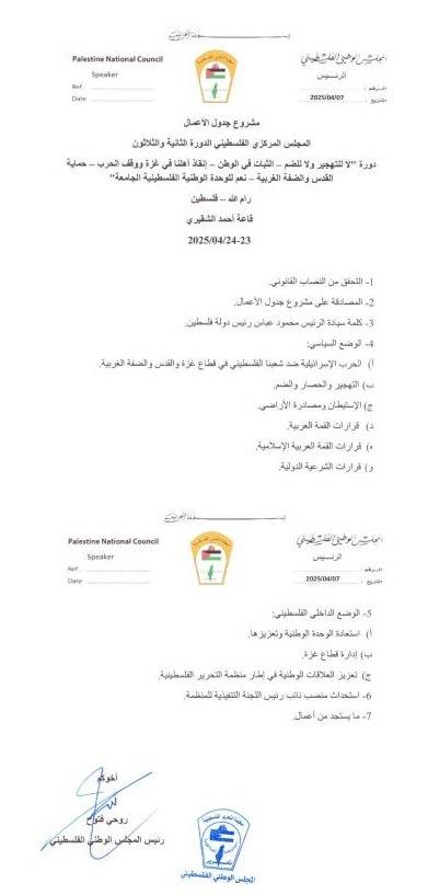 جدول أعمال المجلس المركزي الفلسطيني في دورته الـ32