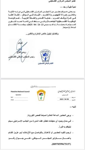 وجه المجلس المركزي لمنظمة التحرير الفلسطينية دعوات لأعضائه البالغ عددهم حوالي 180 عضوا للاجتماع في رام الله في 23 و24 من أبريل، لاستحداث وتعيين منصب نائب للرئيس محمود عباس في اللجنة التنفيذية لمنظمة التحرير الفلسطينية.
