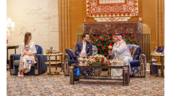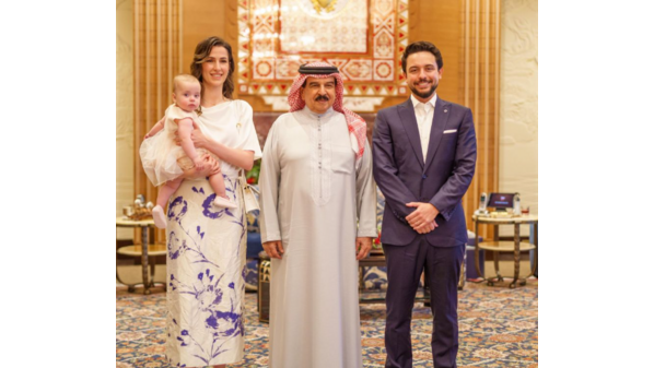 التقى سمو الأمير الحسين بن عبدالله الثاني، ولي العهد، ترافقه سمو الأميرة رجوة الحسين، جلالة الملك حمد بن عيسى آل خليفة، ملك مملكة البحرين الشقيقة، خلال الزيارة الخاصة التي يجريها سموهما إلى مملكة البحرين.