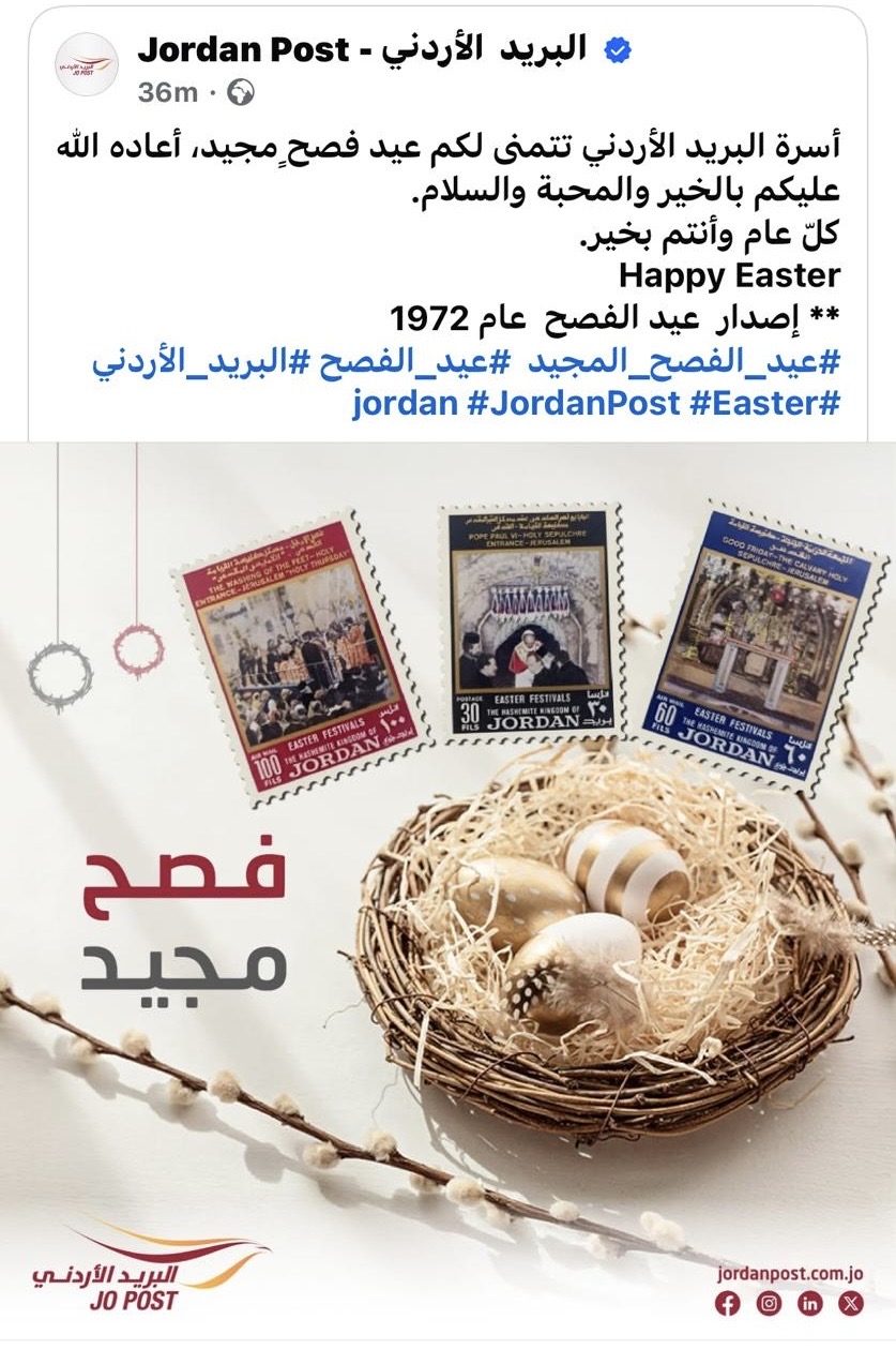 إصدار متميز جديد للبريد الأردني بمناسبة عيد الفصح المجيد ..