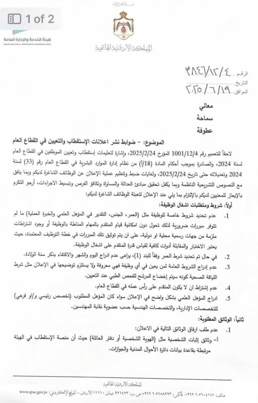 أصدرت هيئة الخدمة والإدارة العامة تعميمًا رسميًا يتضمن تحديثًا مهمًا على ضوابط نشر إعلانات التوظيف في القطاع العام، وذلك بهدف تعزيز العدالة وتوسيع قاعدة الفرص أمام المتقدمين.