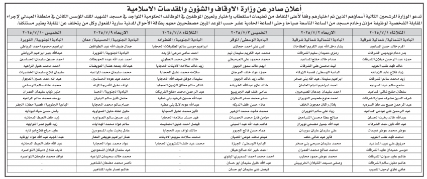 شواغر وظيفية ومدعوون لإجراء المقابلات (أسماء)