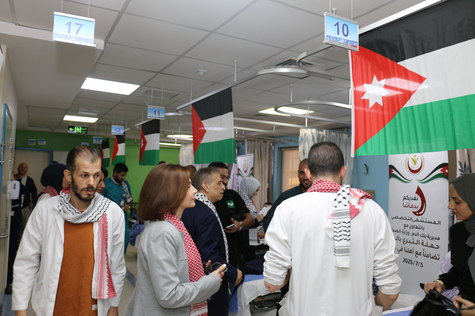 انطلقت في المستشفى التخصصي، امس،، حملة تبرع بالدم تحت شعار «نفديكم بدمائنا»، دعمًا للأهل في قطاع غزة.ونُظمت الحملة بالتعاون بين المستشفى التخصصي، ومديرية بنك الدم في وزارة الصحة، والخدمات الطبية الملكية، وتهدف إلى جمع أكبر عدد ممكن من وحدات الدم لتعويض النقص الشديد في القطاع، في وقت أصبح فيه وجود متبرعين في غزة شبه مستحيل، بسبب سوء التغذية الذي يعاني منه سكان القطاع نتيجة الحصار الجائر، ومنع دخول المساعدات الغذائية والطبية.وشهدت الحملة توافدا شعبيا كبيرا لاسيما من فئة الشباب.وقال رئيس جمعية المستشفيات الخاصة، ومدير عام المستشفى التخصصي، الدكتور فوزي الحموري، إن هذه المبادرة الإنسانية والوطنية تأتي امتدادًا لمواقف الأردن الثابتة، بقيادة جلالة الملك عبدالله الثاني، في نصرة الشعب الفلسطيني وقضيته العادلة، وتخفيفًا لمعاناة أهل غزة، وتضامنًا معهم في ظل الحصار الخانق والنقص الحاد في وحدات الدم، ما يجعل التبرع اليوم أكثر من مجرد واجب، بل رسالة حياة. واشار لـ» الدستور» ان مستشفيات قطاع غزة متهالكة جدا بسبب نقص المستلزمات والاودية وكل مقومات إدارة المستشفيات التي تحتاج إلى 3 الاف وحدة دم في ظل الإصابات الكبيرة والخطيرة ولا توجد إمكانيات لفتح المجال أمام أهالي القطاع بسبب الظروف وما يعانونه من سوء التغذية أو ندرة الغذاء.واضاف ان هذه الحملة هي عنوان لاختلاط دمائنا مع اشقائنا في القطاع ، مثمنا مشاركة أبناء وبنات الوطن في الحملة، مشيدًا بروح العطاء التي لطالما ميّزت الأردنيين في كل موقف إنساني.من جانبه قال شكر مدير مديرية بنك الدم الدكتور علاء سلامة المجتمع المحلي والمستشفى التخصصي الذي عمل على تهيئة العملية التنظيمية لهذه الحملة.
