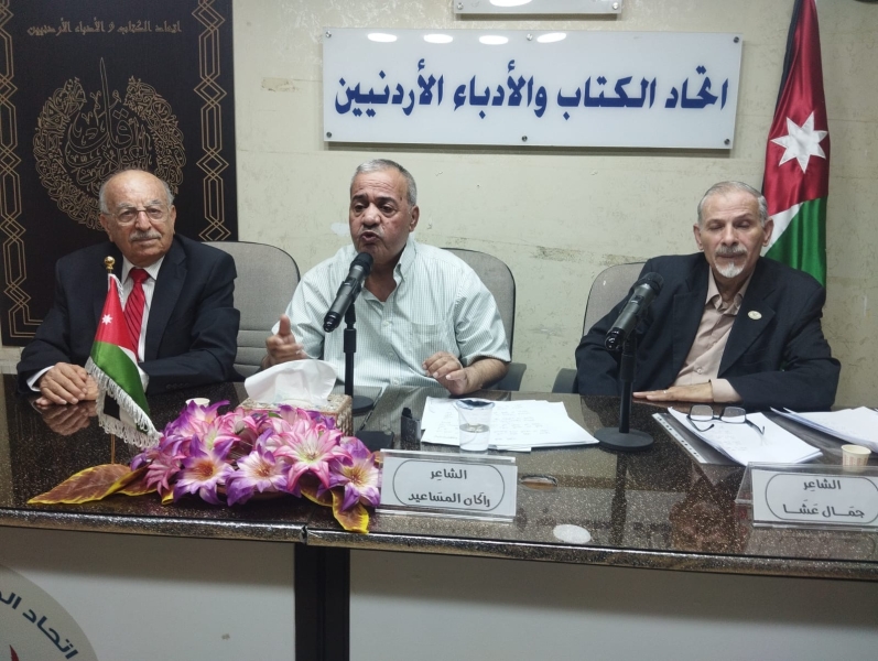 أقام إتحاد الكتاب والأدباء الأردنيين مساء الأربعاء أمسية شعرية للشاعرين جمال عشا وراكان المساعيد ضمن نشاطاتة الثقافية الأسبوعية و قدم الأمسية أ الأديب ضيغم القسوس..
