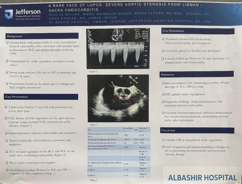 ويمثل هذا العمل العلمي إنجازًا نوعيًا يُعد من السوابق النادرة جدًا على مستوى العالم، وهي الحالة الأولى التي تُنشر من وزارة الصحة الأردنية ضمن هذا المؤتمر الدولي المرموق، مما يعكس مستوى الكفاءة والتميز الإكلينيكي والبحثي في مستشفيات البشير.