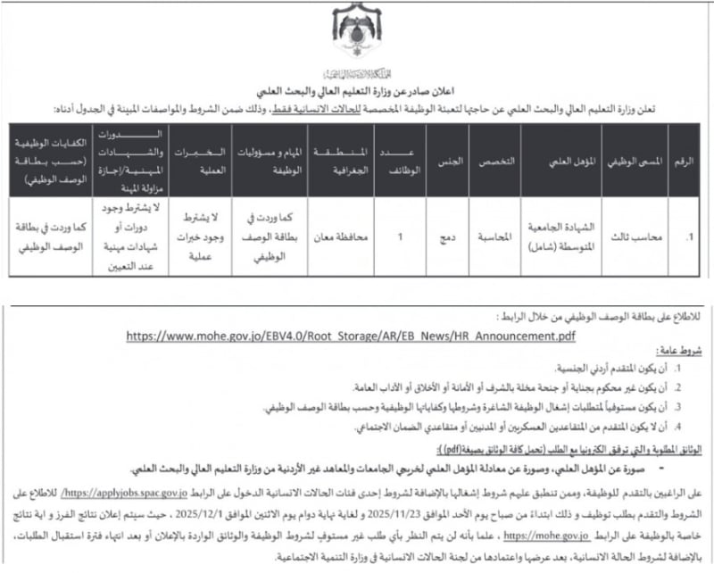 أعلنت مؤسسات حكومية اليوم الخميس، عن حاجتها لتعبئة وظائف شاغرة.