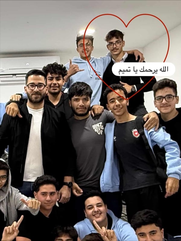 وكتب الأستاذ محمود بني عطا في وداعه خبرني: "الأسبوع الماضي كنت بيناتنا يا تميم ونتصور ومبسوطين، واليوم رايح تلاقي وجه ربك... أشهد لله أنك من أكثر الطلاب خلقًا درستهم في حياتي... لقاؤنا في الجنة بإذن الله يا حبيب القلب، ربنا يرحمك."