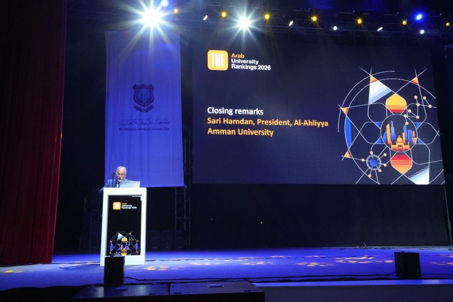 • وخلال حفل الختام، عبّر الأستاذ الدكتور ساري حمدان، رئيس جامعة عمّان الأهلية، عن اعتزازه بالنتائج التي حققتها الجامعة في التصنيف ، موجّهًا الشكر لجميع المشاركين ومهنئًا الجامعات التي ظهرت ضمن التصنيف.