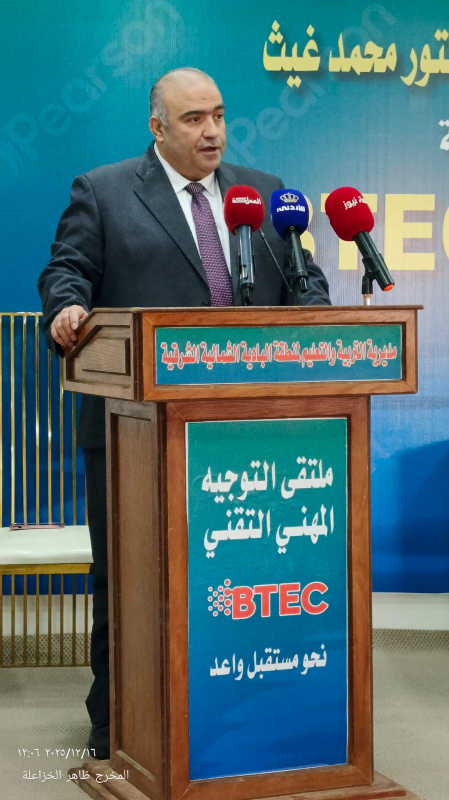جاء ذلك خلال رعايته ملتقى التوجيه للتعليم المهني والتقني “نحو مستقبل واعد – BTEC”، الذي نظمته مديرية التربية والتعليم لمنطقة البادية الشمالية الشرقية، اليوم الثلاثاء.