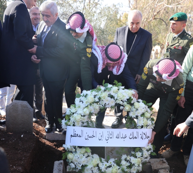 *إربد، ٣ كلنون الثاني ٢٠٢٥ -* مندوباً عن جلالة الملك عبد الله الثاني وسمو الأمير الحسين بن عبد الله الثاني، ولي العهد، شارك رئيس الديوان الملكي الهاشمي يوسف حسن العيسوي اليوم السبت في مدينة إربد في مراسم تشييع جثمان العين ونائب رئيس الوزراء الأسبق الدكتور صالح إرشيدات، الذي وافته المنية أمس الجمعة.