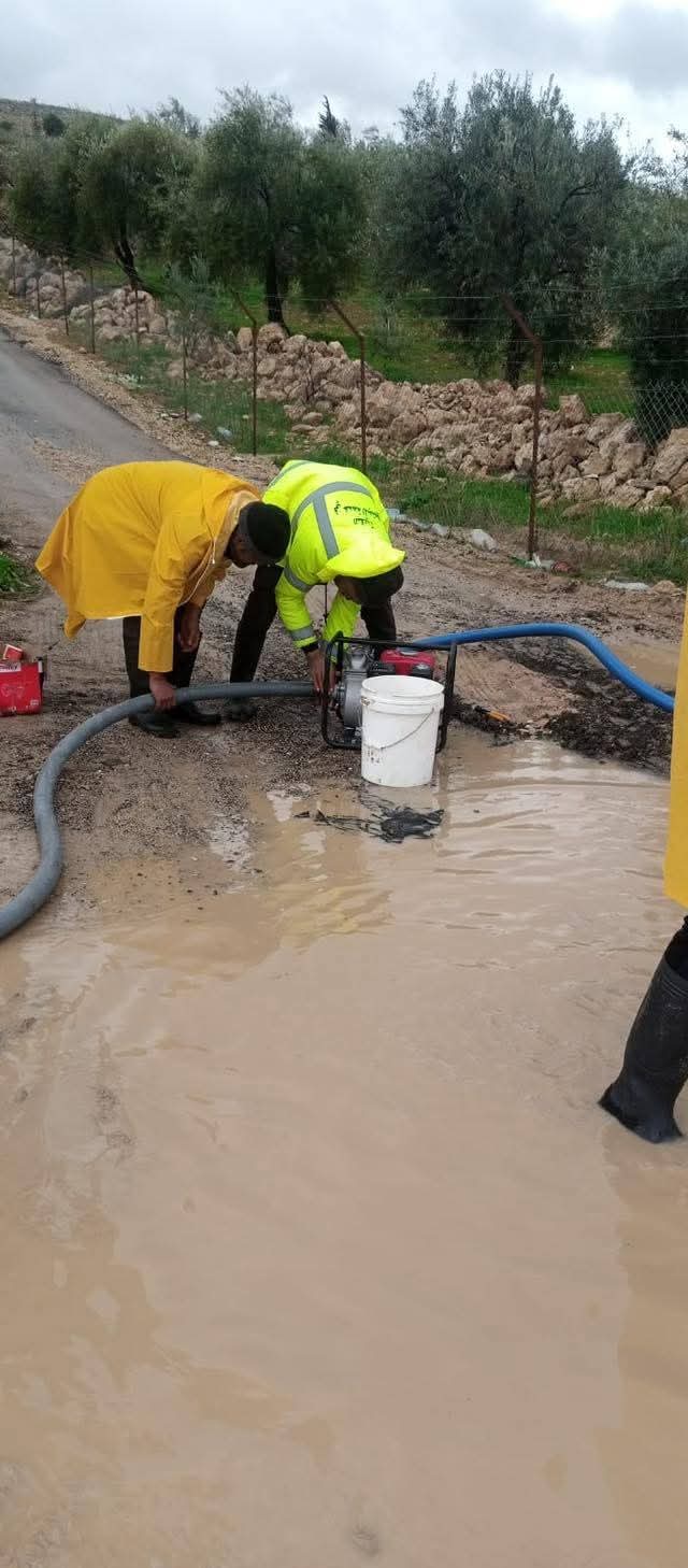 وشملت الجهود متابعة دقيقة للمواقع الميدانية واتخاذ الإجراءات اللازمة لمعالجة تجمعات مياه الأمطار، حيث عملت الكوادر والآليات في منطقة دحل على توسيع مجرى المياه وسحب التجمعات المائية، للحد من أي تأثيرات سلبية محتملة وضمان انسياب الحركة وسلامة الممتلكات.
