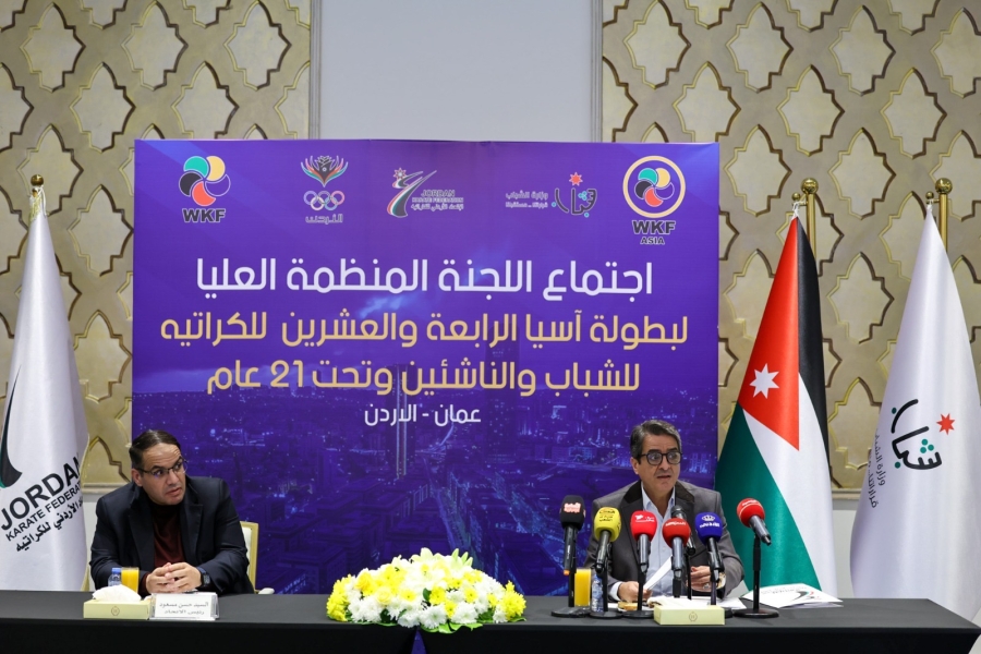 ترأس وزير الشباب الدكتور رائد سامي العدوان اجتماع اللجنة المنظمة العليا لبطولة آسيا الرابعة والعشرين للشباب والناشئين وتحت سن 21 عام للكراتيه، الذي نظمه الاتحاد الأردني للكراتيه وبالتعاون مع وزارة الشباب، اليوم السبت بحضور رئيس الاتحاد حسن مسعود وأعضاء اللجنة.