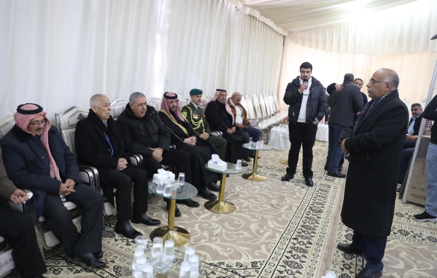*عمان ١٨ كانون الثاني ٢٠٢٦-* مندوبا عن جلالة الملك عبدالله الثاني وسمو الأمير الحسين بن عبدالله الثاني، ولي العهد، قدم رئيس الديوان الملكي الهاشمي يوسف حسن العيسوي، اليوم الأحد، واجب العزاء إلى عشائر الحويان والمناصير وعازر.