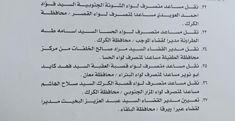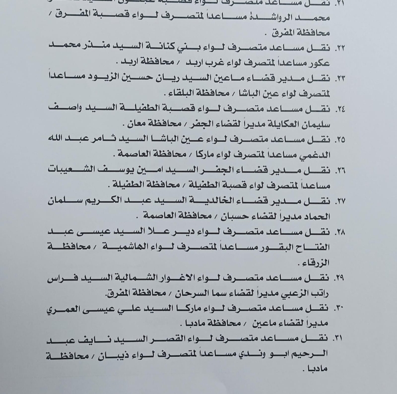 أصدر وزير الداخلية، قرارا يقضي بإجراء تشكيلات إدارية واسعة شملت عددا كبيرا من الحكام الإداريين في مختلف محافظات المملكة.