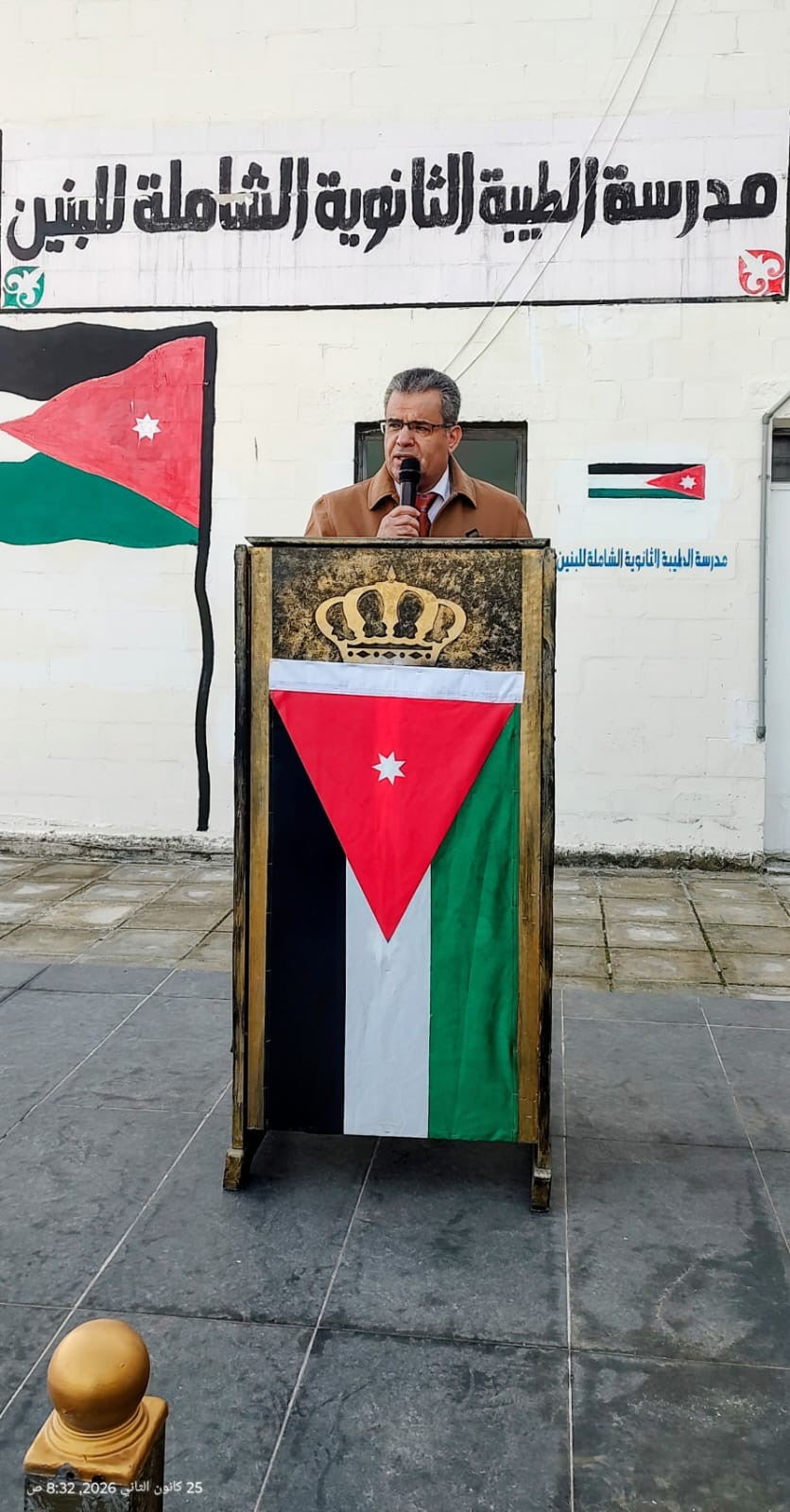 وخلال كلمته، وجّه الدكتور الجراح مجموعة من الرسائل التربوية الهادفة للطلبة، مؤكداً أهمية الجد والاجتهاد في التحصيل الدراسي، والمحافظة على نظافة البيئة المدرسية والحد من الإلقاء العشوائي للنفايات، بما يتماشى مع توجيهات وزارة التربية والتعليم والبرنامج الوطني التنفيذي للمحافظة على البيئة، إضافة إلى الالتزام بالانضباط المدرسي، لما لذلك من أثر مباشر في بناء شخصية الطالب وتحقيق النجاح الأكاديمي والمهني.