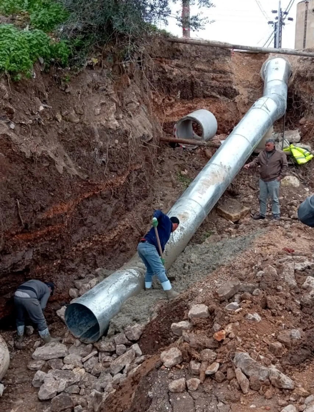 مياه اليرموك تستبدل خط صرف صحي تسبب بفيضان المياه العادمة باربد