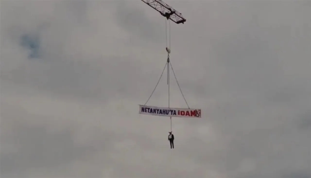 تركيا.. دمية ضخمة لنتنياهو معلقة على رافعة مكتوب عليها "حكم الإعدام"