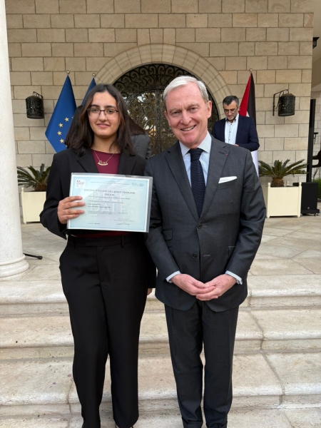*السفير الفرنسي في عمان يكرم الطالبة لمار الراميني لتفوقها بامتحان اللغة الفرنسية المدرسي*
