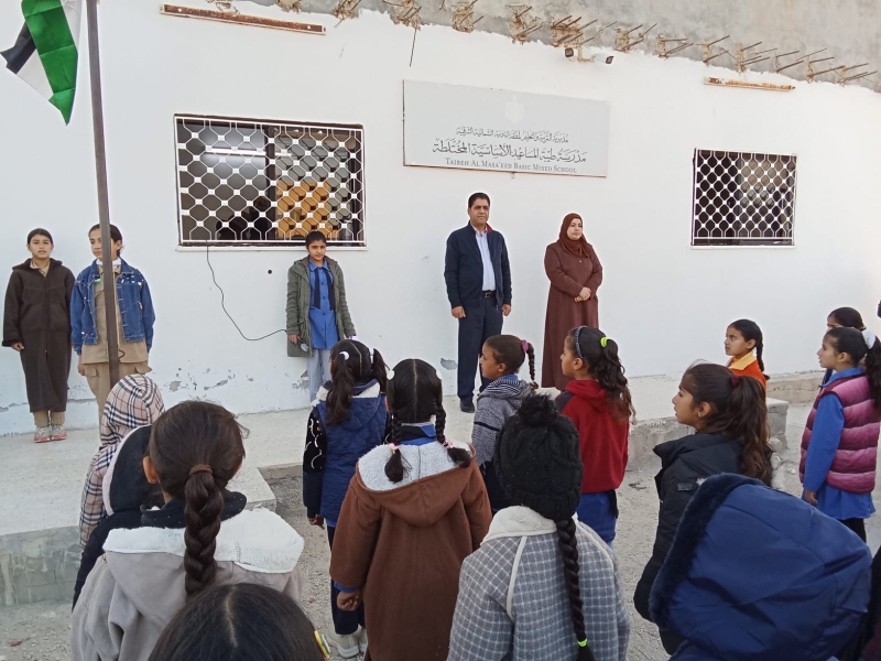 الشرفات يحضر فعاليات الطابور الصباحي في مدرسة طيبة المساعيد ويتفقد قاعات الثانوية العامة